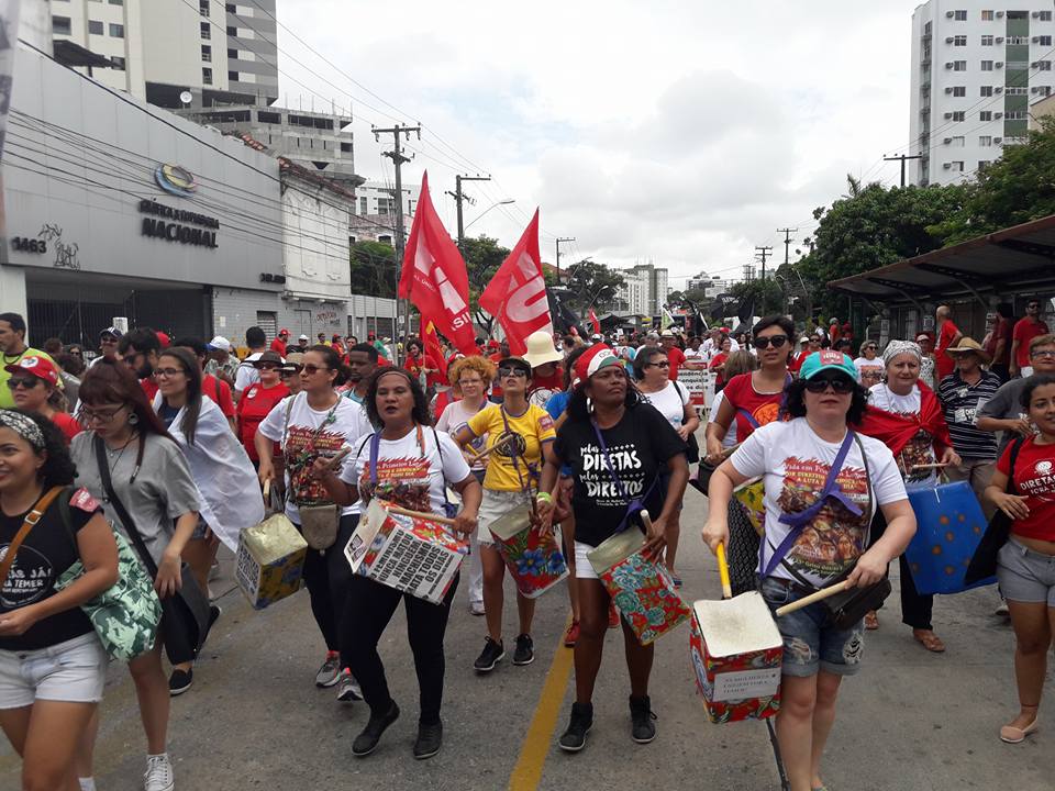Mais de três mil manifestantes ocuparam a Praça do Derby por volta das 9h para cobrar direitos e democracia. Houve participação e engajamento durante a concentração. Por volta das 11h, o grupo saiu em caminhada em direção à avenida Conde da Boa Vista. Lideranças dos movimentos sociais e sindical, além da Marcha Mundial de Mulheres, Cáritas, Pastorais Sociais da Igreja Católica, UNE, Levante Popular da Juventude,Contestação, Movimento Sem Terra (MST), dos negros, estudantes, professores, parlamentares,LGBT, entre outros, estiveram presentes.